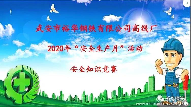 为贯彻落实公司安全生产月会议精神,以“消除事故隐患,筑牢安全防线”为主题,坚持“安全第一,预防为主,综合治理”的方针,牢固树立以人为本,安全生产责任重于泰山的思想观念。6月12日,裕华高线厂组织举办“2020年高线厂安全知识竞赛”活动,安全部部长王文柱、副部长李海军、安监处副处长赵文有、高线厂厂长李范栋、设备副厂长黄鹏出席活动,由公司煤防站站长吕占超、高线厂环保科科长刘静波担任评委。