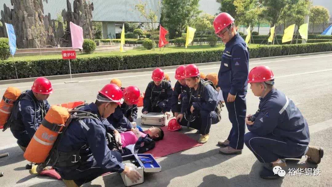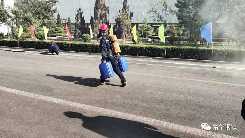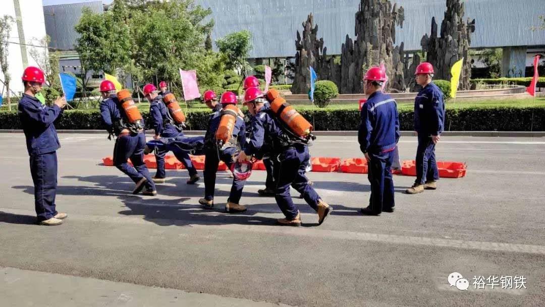 第二个项目是参观煤气救援演练。参演员工着装整齐精神抖擞,步伐矫健刚劲有力,每一个动作都干净利落虎虎生威,展现了新时代钢铁工人强大的凝聚力和战斗力。