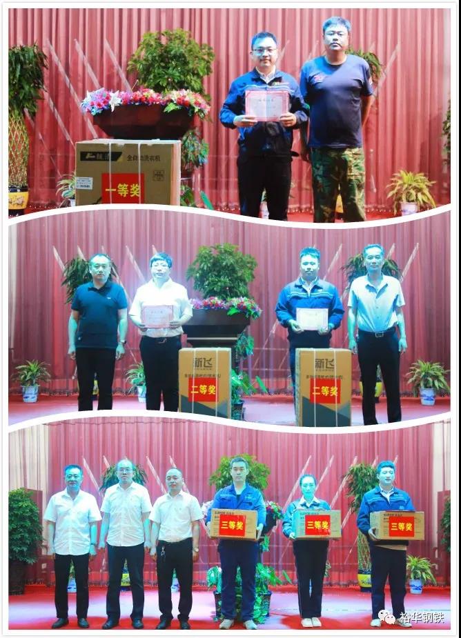 经过近两个小时的激烈角逐,最终炼钢厂高超荣获本次比赛一等奖,宣教中心李航、烧结厂祝世强荣获二等奖,高线厂李晓鹏、炼铁西区王彦雷、宽带钢厂邓晓玲荣获三等奖。由生产副总李海亮宣读获奖名单,担任评委的各位领导为参赛选手进行颁奖并合影留念。