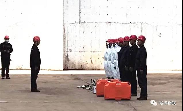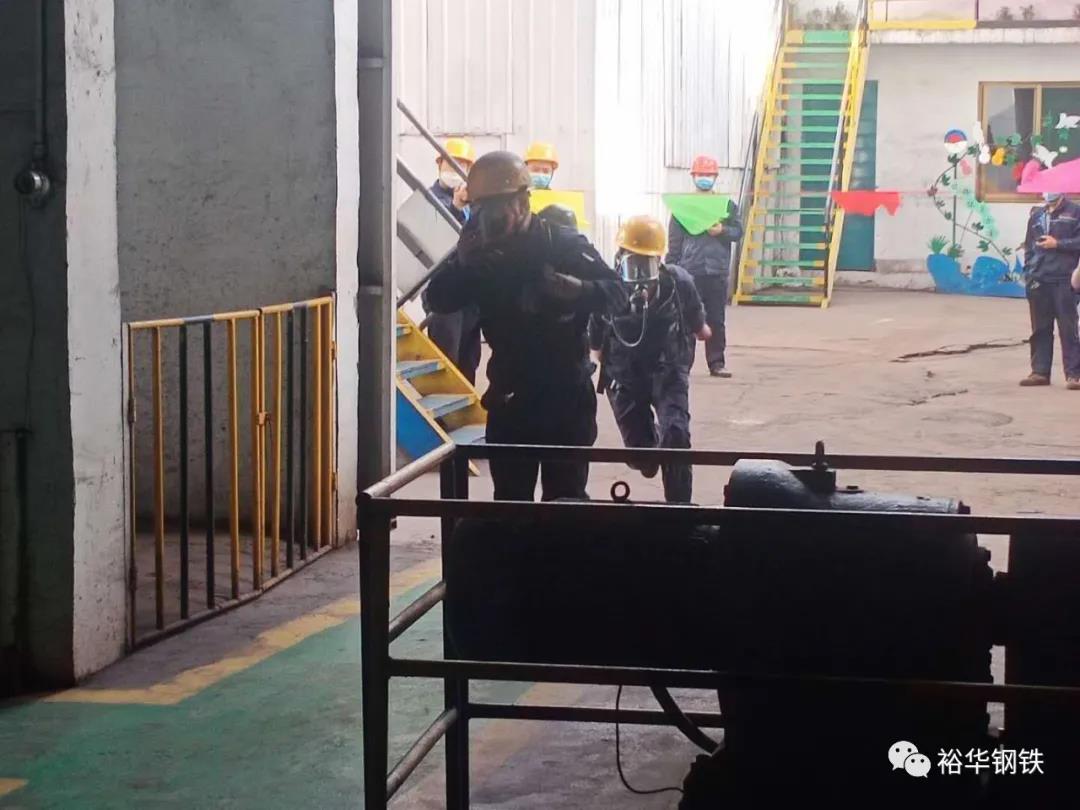 本次演练地点设置在竖炉大汽包区域,安全科科长李建强担任本次演练总指挥,竖炉车间主任孔令强担任本次演练现场指挥。