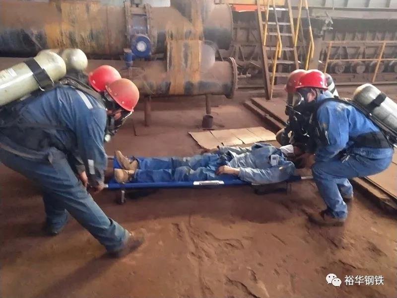 根据当时风向及CO浓度,工段迅速组织两名员工王某和陈某佩戴空气呼吸器做好救援准备,在事故地点上风口20米、下风口40米设立警戒线封锁现场并疏散周围区域作业人员。