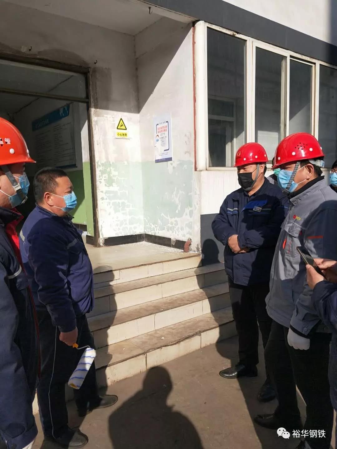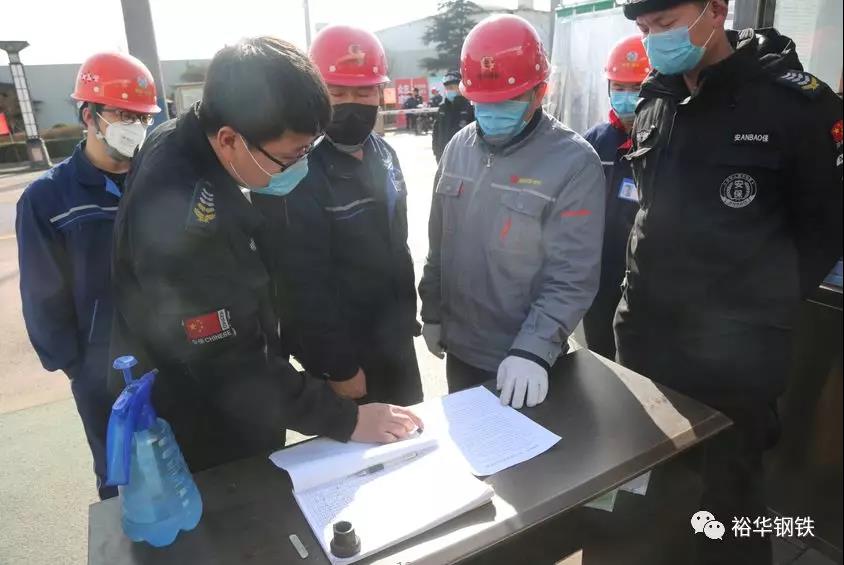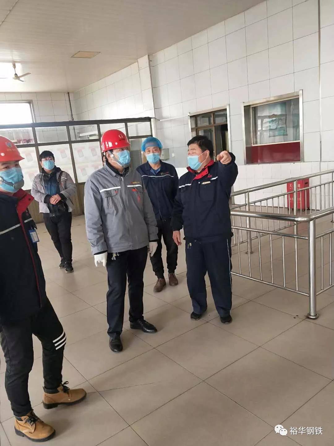为全面做好集团疫情防控工作,2月15日下午,安全部组织对集团裕华区门岗、餐厅、宿舍、预备隔离区、烧结厂、炼铁东区等重点区域的疫情防控工作进行督导检查。检查组由安全部长王文柱、安全副部长李海军带队,裕华安监处副处长张晓明、安全部特种设备主管高海津等陪同检查。