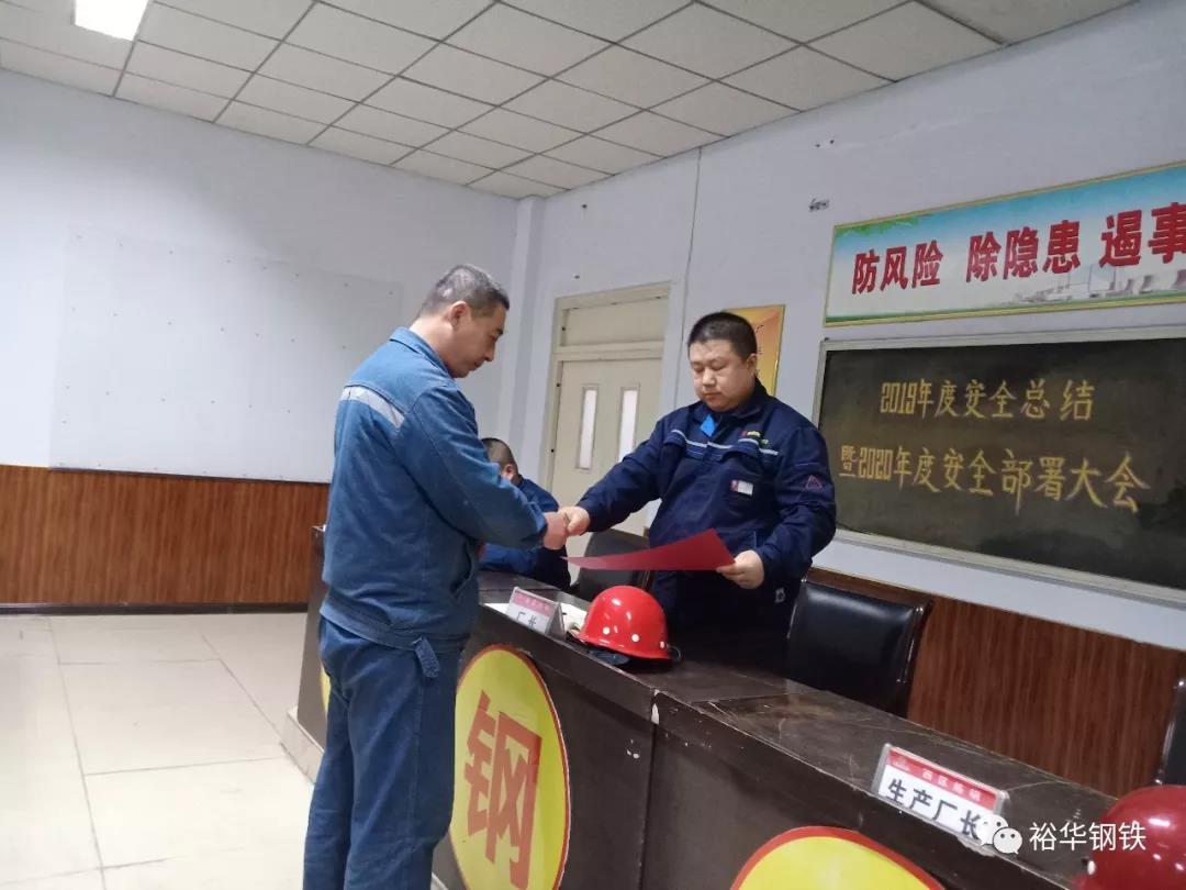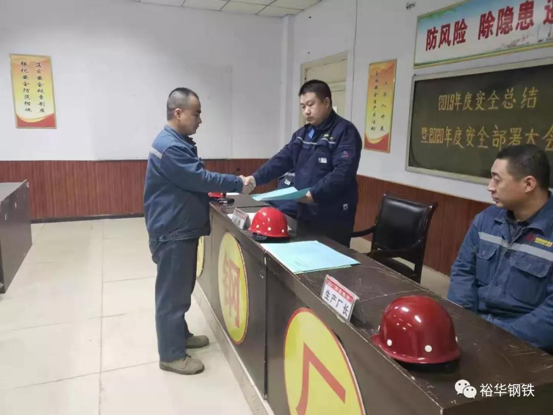 随后郭科长对西区炼钢2019年度安全工作,从年度目标完成、责任落实情况、教育培训情况、安全月开展及双控机制的推行五个方面做总结汇报,并围绕公司安全会议精神,就我厂2020年度安全工作做具体部署,明确工作目标。科室负责人及各工段安全责任人签定并向刘厂长递交安全生产承诺书。