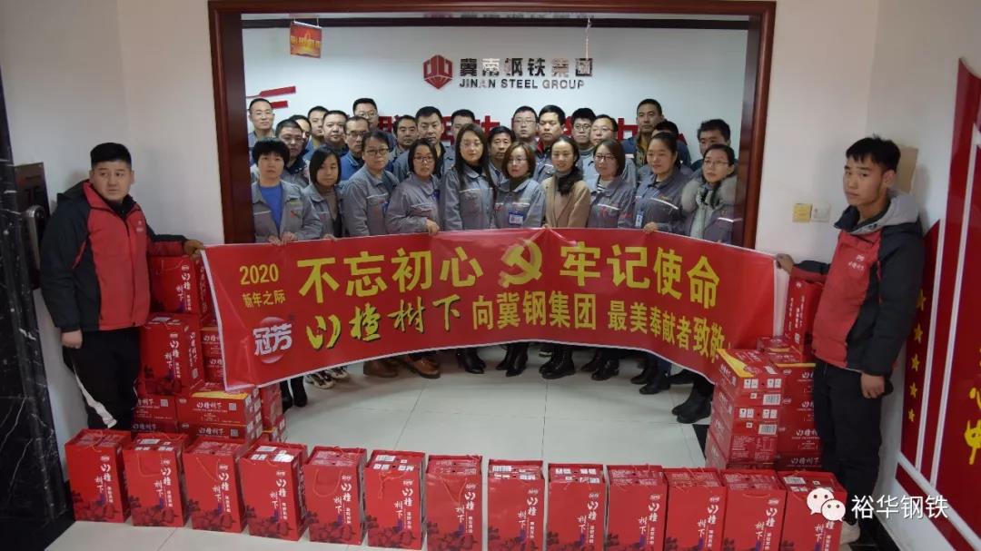 “冠芳·山楂树下”武安总代理来到我集团各厂区慰问最美党员、最美奉献者、优秀青年职工,送上“原汁原味”的祝福。祝福冀南钢铁集团全体干部职工新年快乐,再创辉煌。那一份份精美的礼盒,红红火火;那一张张灿烂的笑脸,温暖并快乐着。
