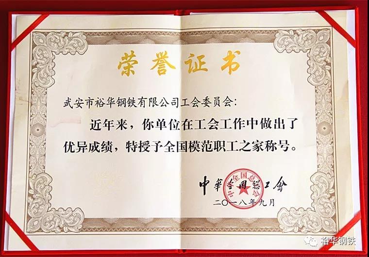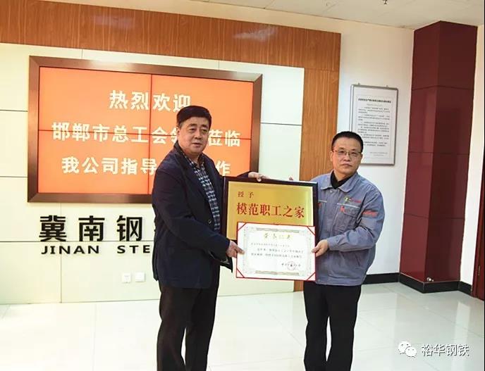 各位领导对集团裕华钢铁工会建设各项工作给予大力认可,同时希望工会组织在今后的工作中层楼再上,在行业内竖起标杆,以吸引同行业前来观摩交流。并代表中华全国总工会授予集团裕华公司工会“模范职工之家”荣誉奖牌和获奖证书。