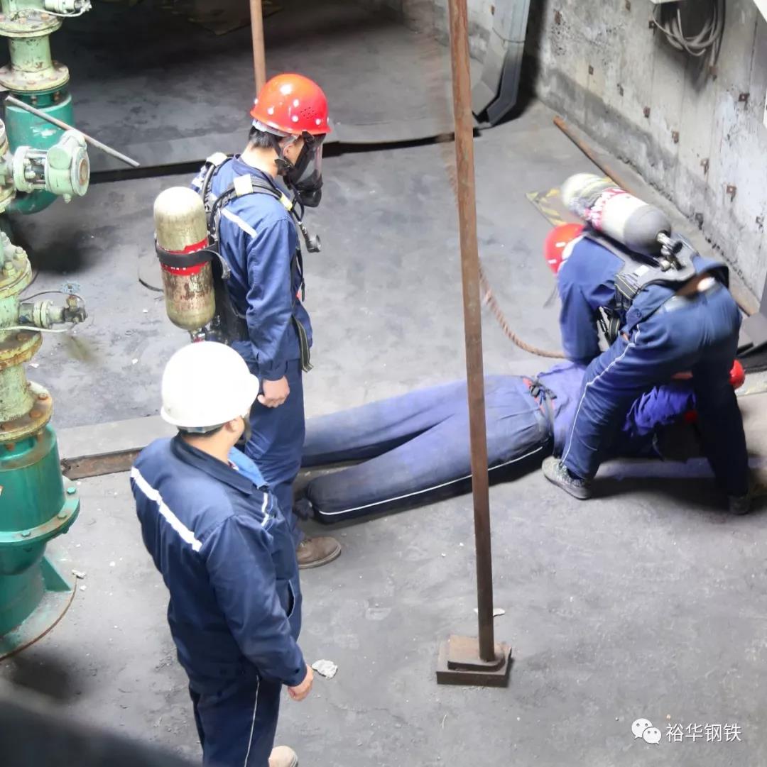 为深入贯彻落实习近平总书记关于安全生产工作的重要论述,坚决落实好省市领导批示精神和公司总经理安全工作会议部署安排,牢固树立安全发展理念,进一步强化红线意识和底线思维,深刻汲取事故教训,找差距、堵漏洞、抓落实,11月1日上午,裕华高线厂组织了一次有限空间窒息中毒应急救援演练。特邀公司轧钢经理刘文波、安监处处长李海军、副处长赵文有进行现场指导点评,厂长李范栋、副厂长郭杨利以及各车间工段负责人参加此次演练。