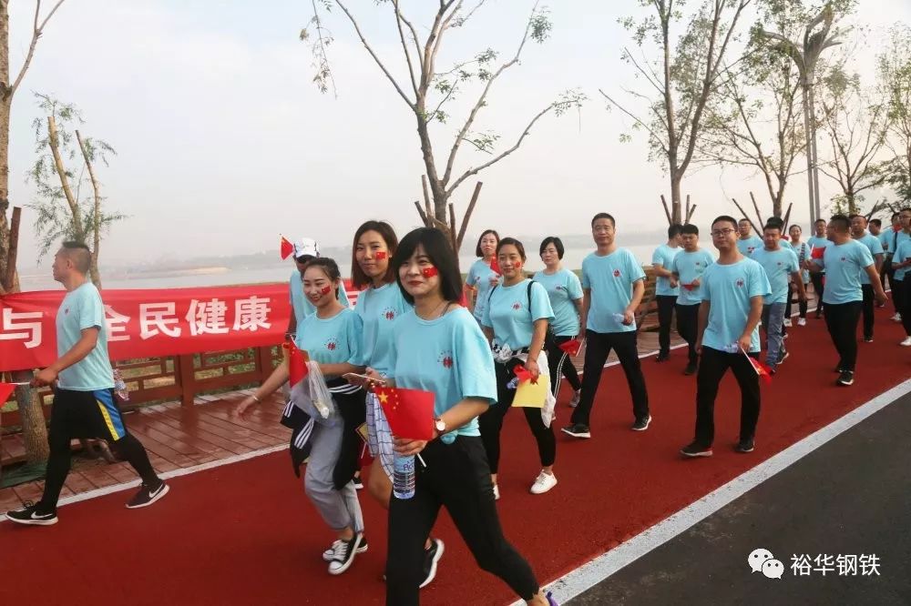 在晨光熹微中,初秋的南洺湖烟波浩渺,鹭翔鸥集,天高云淡、彩旗飘扬。冀南钢铁集团32名员工在工会副主席孙红明的带领下,身着“生态武安,大美洺湖”的蓝色文化衫,排着整齐的方队,精神饱满的投入到万人健步行的行列中来。大家互相鼓励,并肩前行,发扬团队精神,展现出良好的企业风貌,全部圆满走完全程。