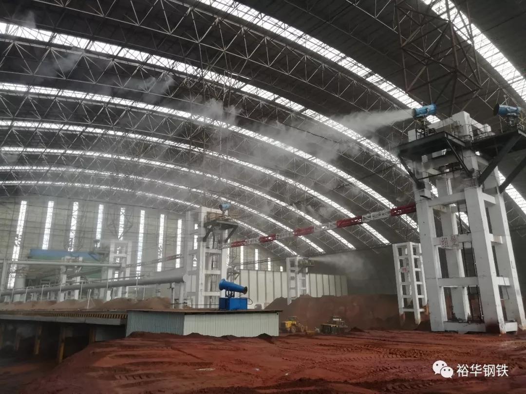 考察团在全封闭物料大棚,听取解说员详细介绍了我公司所有料场全部实现密闭式作业、无尘化生产。全封闭大棚采用国内最先进的建筑技术,料场内有雾帘、雾炮、云尘封、雾尘封等高效抑尘系统,料场外有全自动新型洗车机,整个工程具有工艺先进,跨度大,覆盖面积广,无立柱架构的特点,解决了原料扬尘无组织排放,改善了周边环境,有效降低了原料粉尘损失。