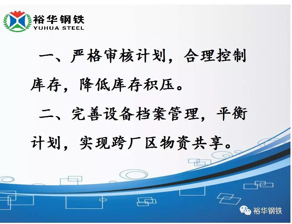王处长以物资仓库所涉业务为切入点,利用PPT形式,结合实际工作,主要从五个方面生动详细的讲解了关于推进节能降耗,降本增效实施方案。一、严格审核计划,合理控制库存,降低库存积压;二、完善设备档案管理,平衡计划,实现跨厂区物资共享;三、以旧换新,鼓励修旧利废;四、加强备品备件管理,避免人为损坏浪费;五、加强设备验收管理。