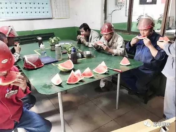 为了确保职工身心健康,安全度夏,高线厂设备厂长郭扬利亲自下车间为大家送来清凉解暑的西瓜,慰问奋战在生产一线的职工。并要求安全科结合工段负责人,一定要做好防暑降温工作,落实有效的防暑措施,确保职工健康和安全生产。郭厂长的一席话如一缕凉爽的风,吹进了职工的心底,鼓舞了大家的工作热情,同时深切地感受到了集团的浓浓关爱。