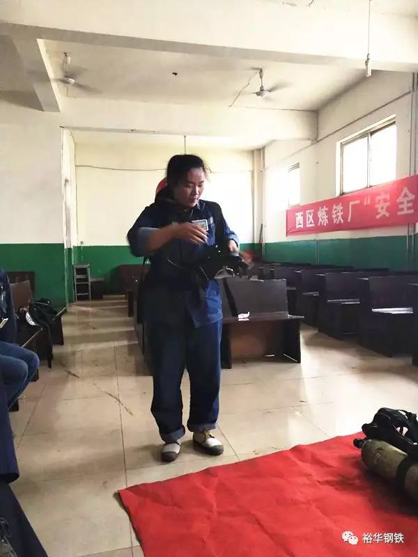 6月29日西区炼铁厂组织所有涉煤气岗位人员开展空气呼吸器技能比武活动,正所谓巾帼不让须眉,女子队杨金桥以17″58的速度获得了本次技能比武的第一名。