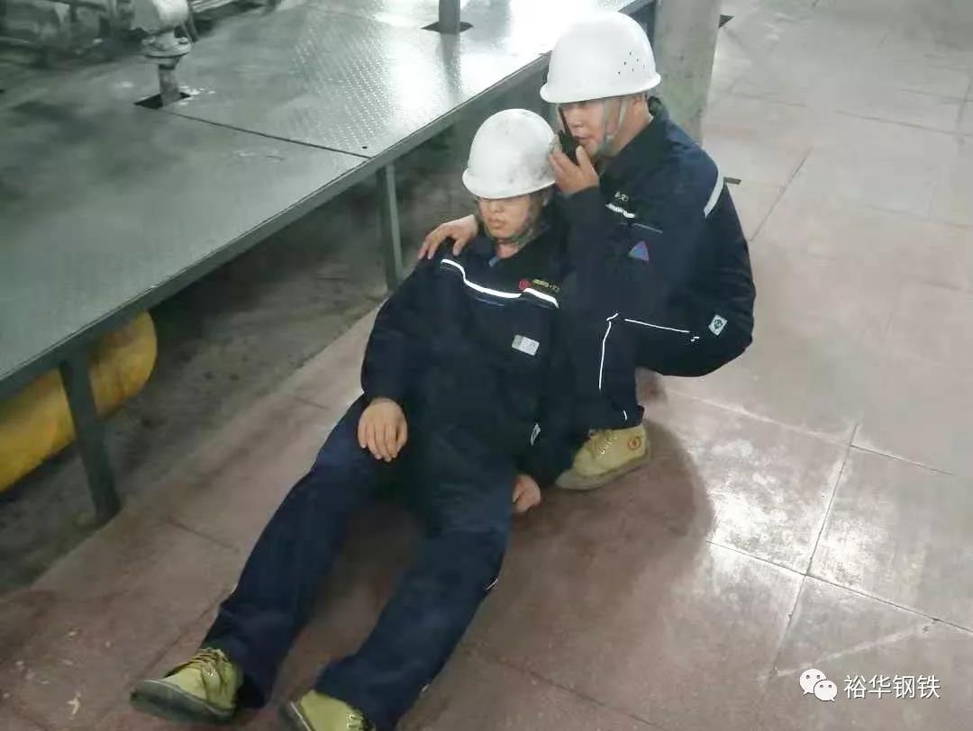 演练模拟一工作人员在车间高温作业时发生中暑,其他工作人员发现后及时上报班组长、工段长,通知厂部。