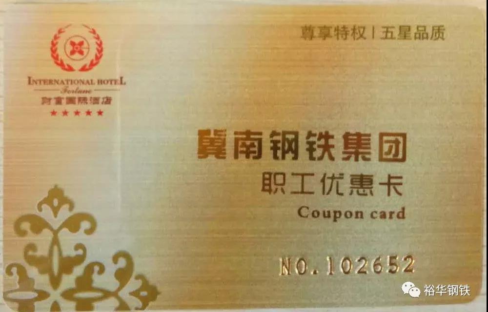 为体现集团领导对员工的真切关爱,7月初,裕华、文丰等三个厂区每一名员工都收到一份特殊的礼物,“冀南钢铁集团职工优惠手册”“冀南钢铁集团职工优惠卡”,凭借此卡,我们即刻拥有五星级财富国际酒店的尊享特权!