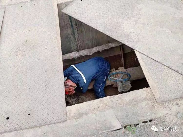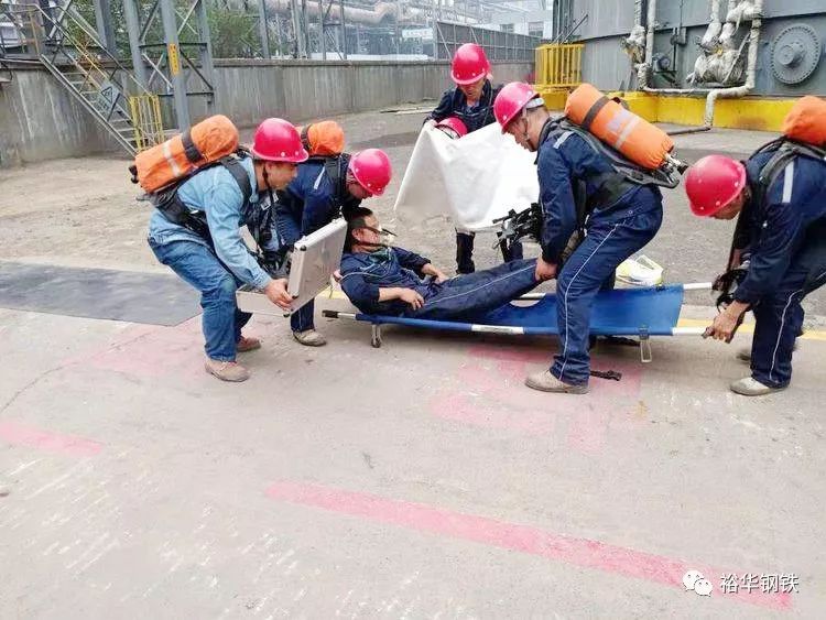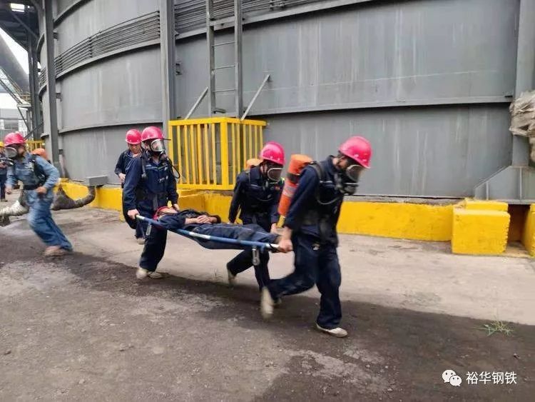 本次演练模拟场景为煤气柜人员在清理排污地沟时,由于未关闭排污阀门,造成煤气泄露,地沟人员防护不全窒息中毒,监护人员发现后立即上报分厂应急指挥中心。