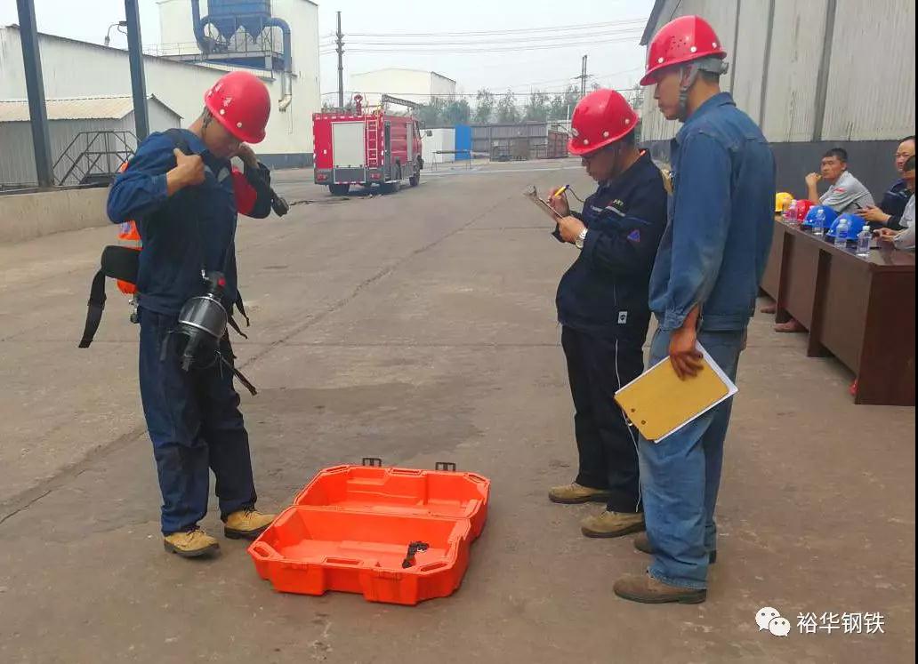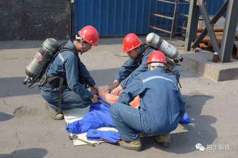 本次应急演练得到了公司各级领导的大力支持,安全主管牛亮和煤气防护站站长郭鹏飞应邀来到应急演练现场观摩指导,煤气防护站尹红彬和李延涛担任此次综合技能大比武的裁判,公司保卫处为此次应急演练提供了消防车。