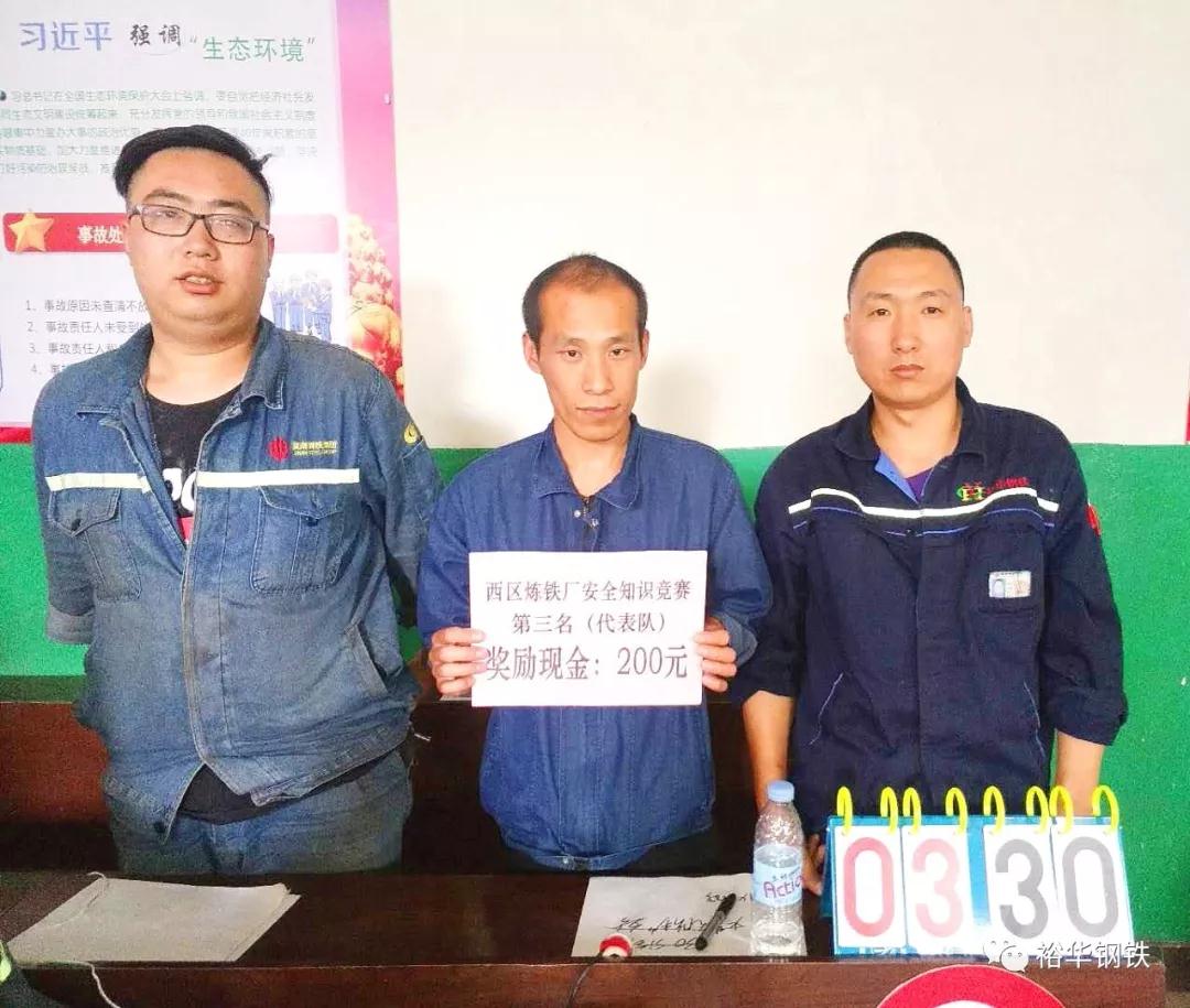 比赛结束后,由安全处长靳张君、西区总调度长王维华、炼钢厂厂长刘密林为前三名获奖队员颁奖。