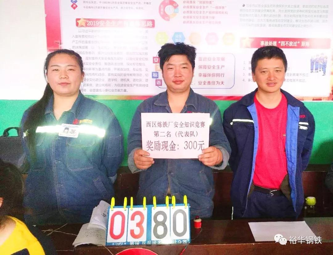 12名员工参加了本次安全知识竞赛,分为6组,分别为连铸工段、天车工段、转炉工段、白灰工段、维修工段、运行工段。题型分为必答题、共答题、抢答题、风险题、加赛抢答题五种类型。活动首先由各代表队抽签确定位置,随后根据比赛规则展开。整个比赛过程气氛活跃,队员积极参与,争先恐后拼第一,发扬了西区炼钢厂敢打敢拼的优良传统。经过激烈的角逐,维修工段、运行工段、白灰工段分别取得了第一、第二、第三名的好成绩。