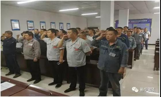 炼铁厂安全科长刘卫平带领大家庄严宣誓:时刻注意安全,认真按章作业;遵守安全法规,履行安全职责;严守规章制度,提高安全技能;不违章、不冒险、不出事故、不留安全隐患!以实际行动确保企业安全生产持续稳定!