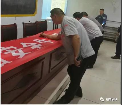 李海军处长、李玉良厂长、宋海文副厂长率先在条幅上签名,全体职工也依次在条幅上签下自己的名字,更把承诺刻在心头。活动也被推向高潮。