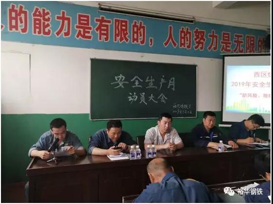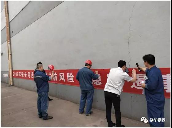 2019年6月份是全国第十八个“安全生产月”,活动的主题是:“防风险、除隐患、遏事故”。为了认真贯彻落实集团公司“安全生产月”各项活动安排部署,扎实推进西区炼铁厂安全工作有序开展,切实提高广大干部员工安全意识,根据分厂整体活动安排,5月31日隆重举行西区炼铁厂2019年“安全生产月”活动启动仪式。希望通过开展一系列的安全生产月活动,使全体干部员工充分认识到安全生产工作的重要性,提高安全意识,安全责任、执行力。确保炼铁厂安全生产形势持续稳定、提高。