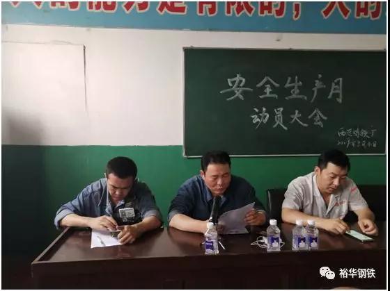 烧结主管杨学兵宣读西区炼铁厂“安全生产月”活动方案和具体项目实施方案。分别为主题演讲周(6月1日—6月9日),应急演练周(6月10日—6月16日),知识竞赛周(6月17日—6月23日),技能比武周(6月24日—6月30日)。