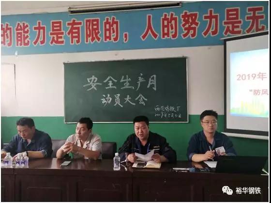 今年6月份是全国第18个安全生产月。2019年5月26日,主区炼铁(烧结)结合当前安全形势,以全国安全生产月为契机,组织班组长以上管理人员召开了安全生产月活动动员会,会议由安全科科长李建强主持。