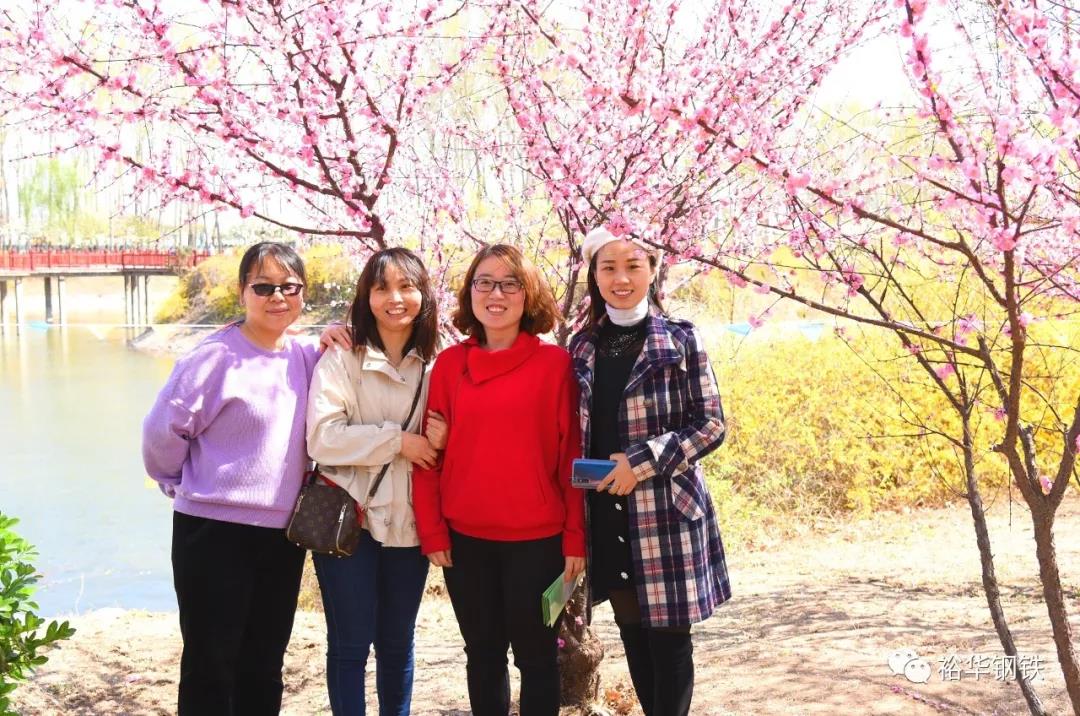 也许这几个好姐妹想亲身感受一下桃花开到美人肩的画面吧,瞧,笑得那么灿烂,不由得让人想起了“人面桃花相映红”的诗句来。那边也有几个好闺蜜在梨花树下合影,那甜美的笑容、雪白的梨花,象征着纯洁的友谊。集团领导和大家一起合影留念,那么的和蔼可亲,好温馨和谐的一家人啊!