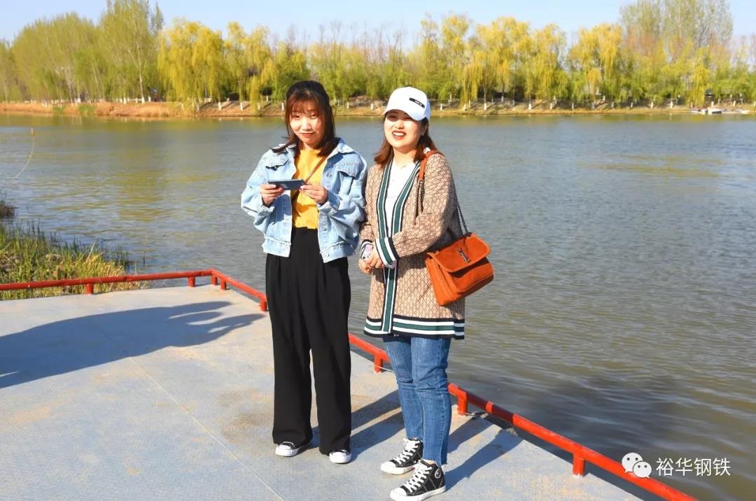 在午后的阳光下,金龟湖上波光潋滟,时而有快艇、画舫驶过,犁开一道长长的水线,荡碎满湖的涟漪。大家有的在岸边斜倚栏干,谈笑风生,指点风光;有的勾肩搭背,亲如兄弟;还有两位美女在水之湄,莞尔一笑,成了春天里一道靓丽的景色。
