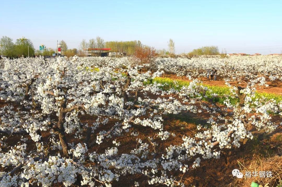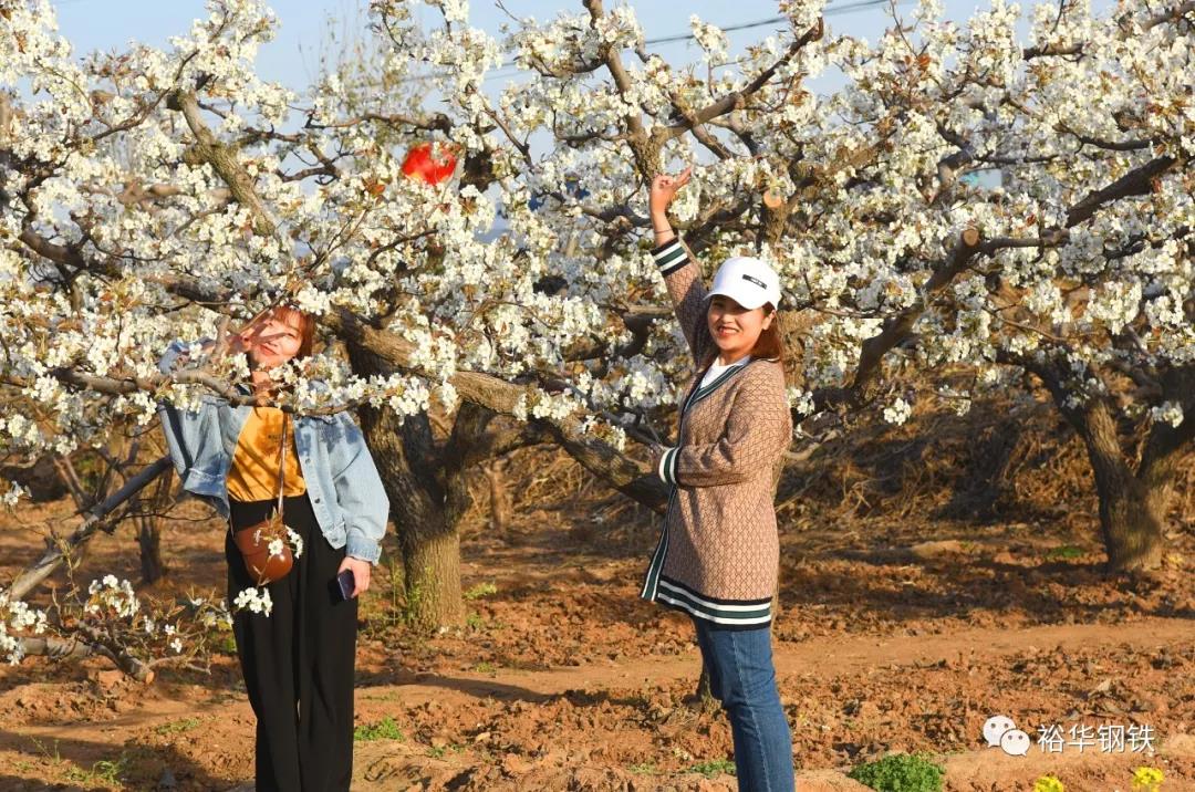 这次户外拓展活动的第一站是勤政园,公司领导和大家一起兴致勃勃的走在万亩梨园中间,徜徉在无边的花海里。满园盛开的梨花欺霜赛雪,在明媚的阳光下,在和煦的春风里,显得那么的素洁、高雅。
