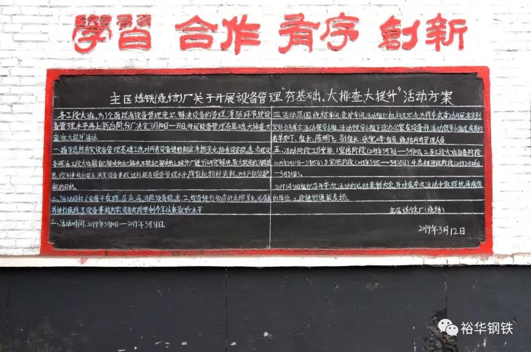 为全面提高设备管理意识,解决设备管理的薄弱环节,使设备管理水平再上新台阶,主区炼铁各分厂于3月份开展设备管理“夯基础、大排查、大整治、大提升”活动,对所有设备进行彻底清擦、美化;排查设备隐患,治理设备漏油,进一步夯实设备管理基础工作。