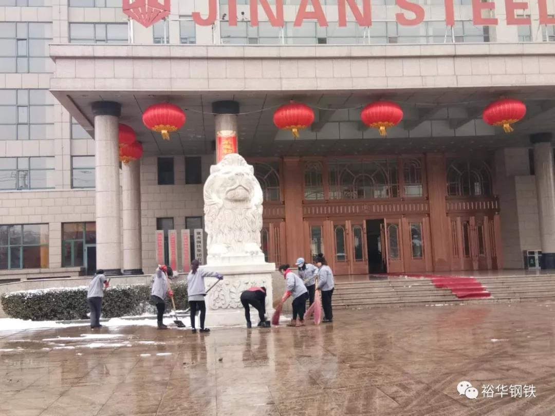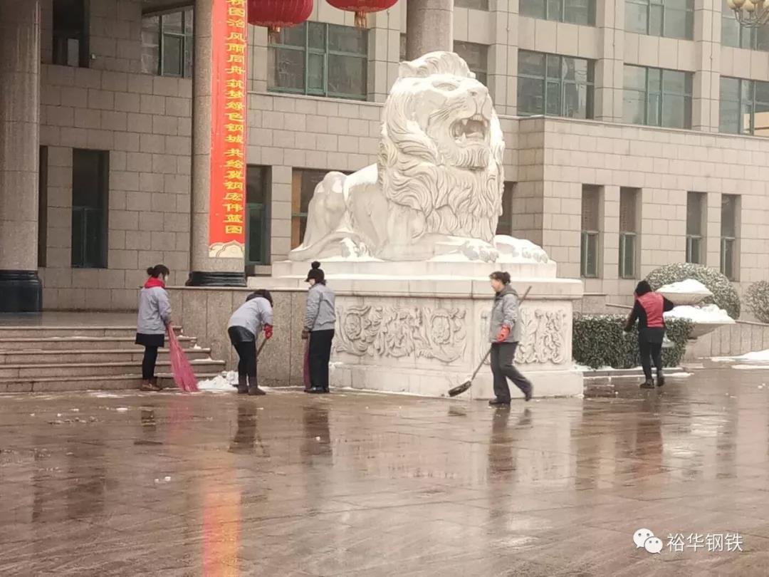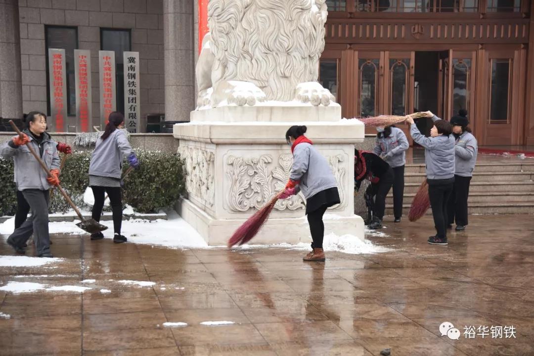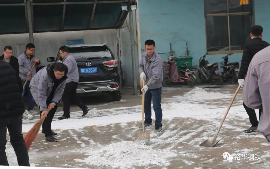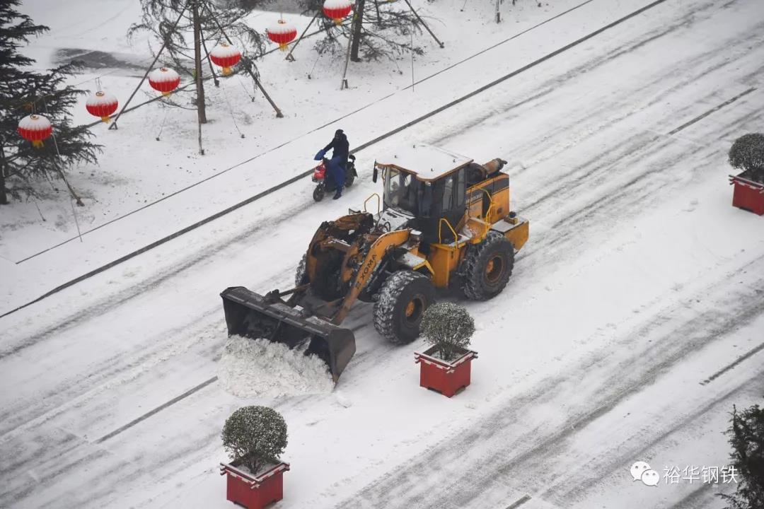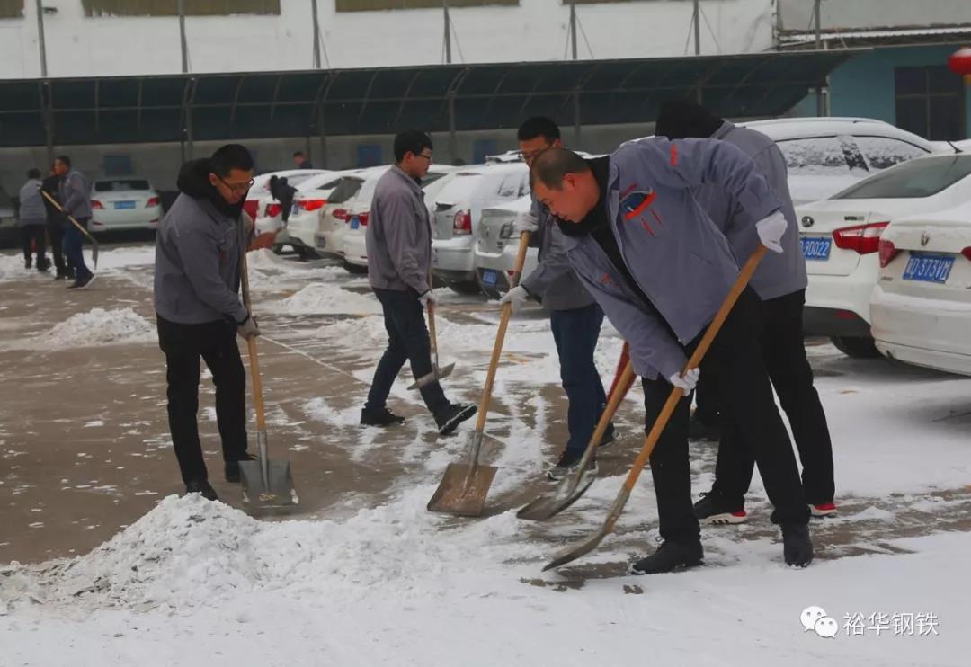 各厂(部)室积极组织员工进行扫雪,铲车也加入进来,为员工上下班提供安全和方便,集团九楼会议室新员工培训工作也在如火如荼进行中,门岗的保安身上落满雪花,但依旧身姿挺拔。