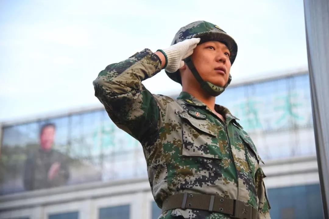 八点整,升旗仪式正式开始,由裕华保卫处和裕华民兵连组成的两支国旗护卫队踏着朝阳,迈着铿锵有力的步伐入场。伴着激昂雄壮的国歌,鲜艳的五星红旗冉冉升起,迎风飘扬。