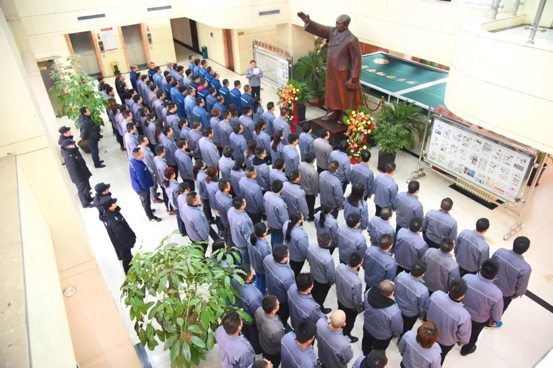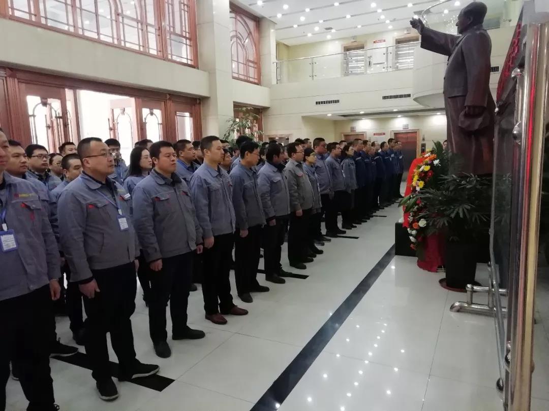 早上八点,在集团党委的组织安排下,裕华,文丰两厂区的党员干部和职工代表共计100多人排列成整齐的方阵,在集团办公楼一楼大厅隆重举行纪念毛主席诞辰125周年活动,本次活动由宣教中心副主任智军主持。