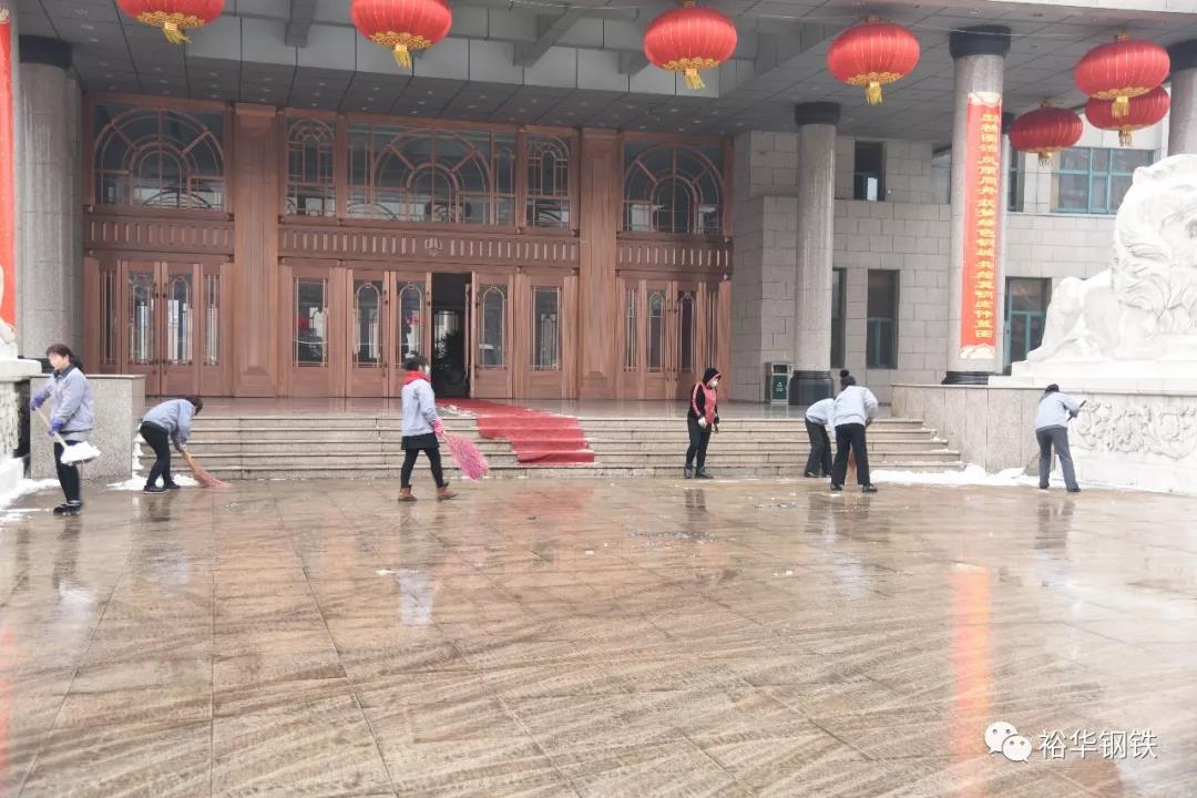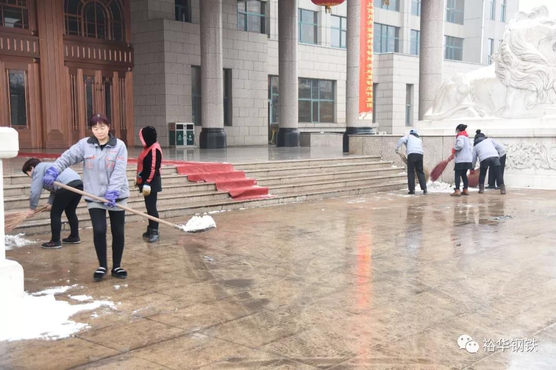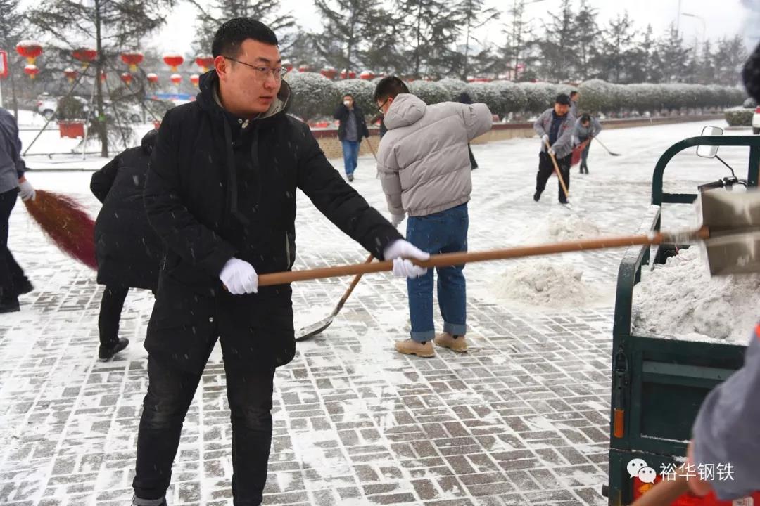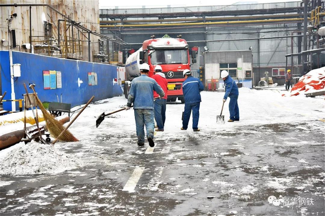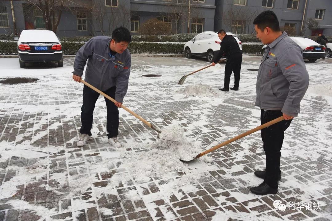 各厂(部)室积极组织员工进行扫雪,铲车也加入进来,为员工上下班提供安全和方便,集团九楼会议室新员工培训工作也在如火如荼进行中,门岗的保安身上落满雪花,但依旧身姿挺拔。