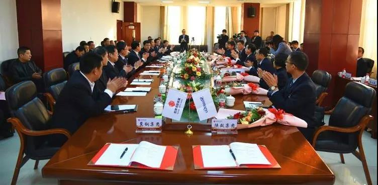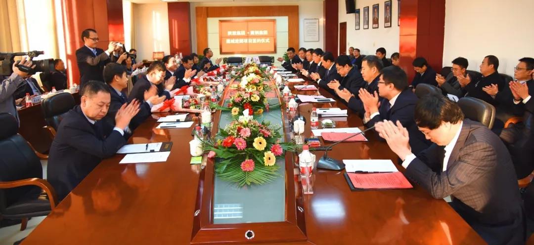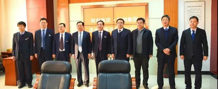 在欢快的音乐声中,陕鼓集团董事长李宏安与冀钢集团董事长王树华签订了“退城进园升级改造项目”合作框架协议并集体合影留念。