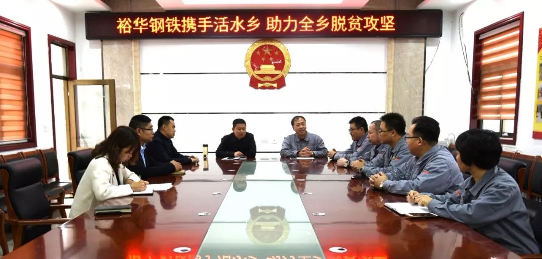由于京娘湖附近修路,帮扶小组一行不得不从西井村绕行至活水乡政府,双方在会议室举行了签约仪式。活水乡党委书记王旭东就乡里扶贫攻坚工作的特殊情况向帮扶小组作了简要汇报,张超、智军作了简短发言,表示企业一定会携手乡镇,共同配合,打好这场扶贫攻坚战,并持续为困难群众优先提供就业岗位,以帮助他们早日脱贫。